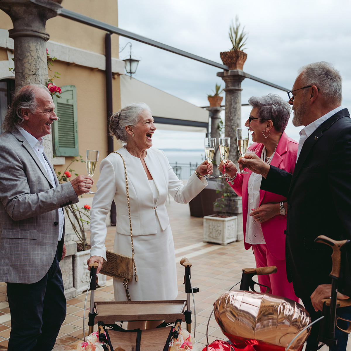 But Mike interrupts her thoughts: “Come on, darling! I have another surprise for you.” Celebrating together is even better, so Mike has invited their friends to join them for their golden wedding anniversary. Together, they toast the happy couple and then set off for the next part of the day’s festivities – just like old times!
