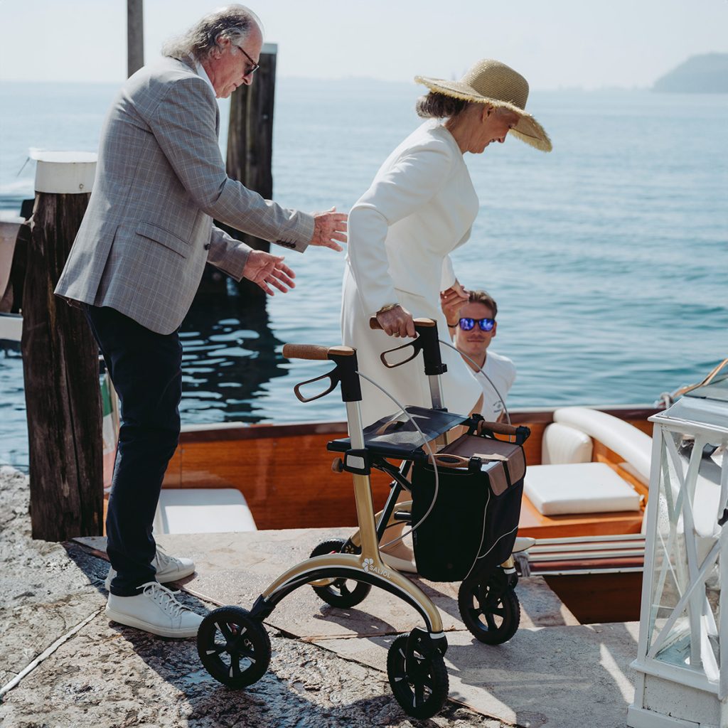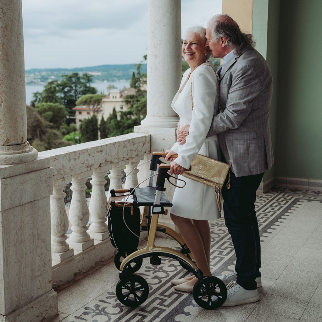Gold has always been her favourite colour – even as a child, she dreamed of a golden carriage. Gold jewellery, stylish clothing, cultural events – this is her world. And she still loves to travel. However, it has become a bit uncomfortable now, and she depends on her husband’s help, as she can no longer walk as easily as she used to.